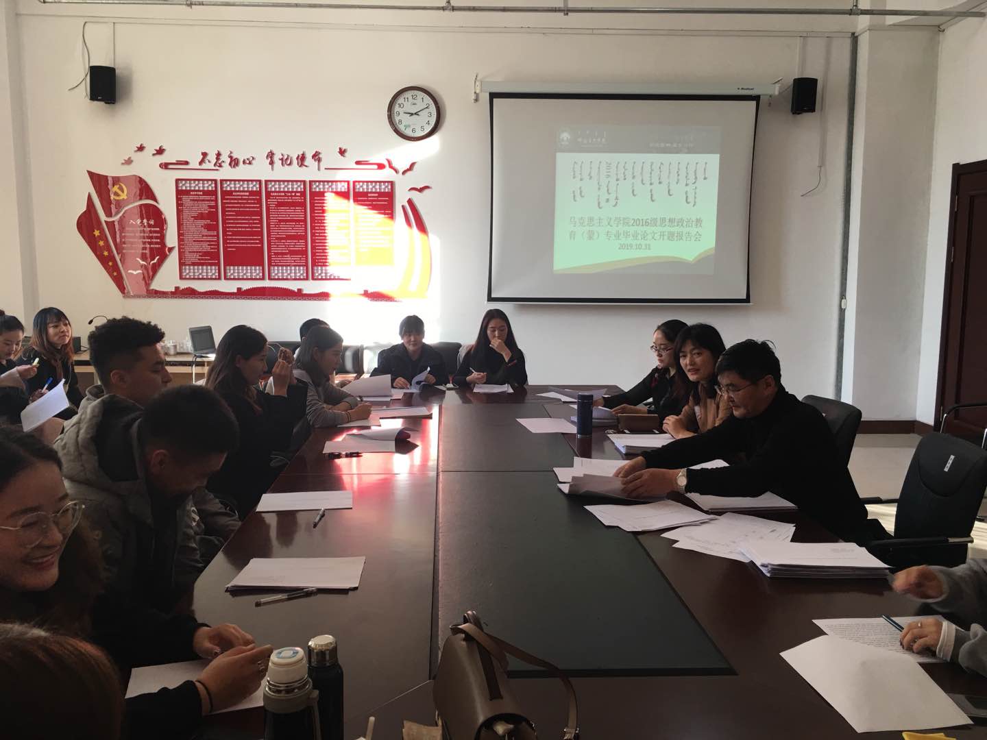 10月30日、31日上午,外围买球的app十大平台在崇文楼B123室召开2020届思想政治教育(蒙)专业毕业生毕业论文开题报告会。外围买球的app十大平台教师乌日汗、赵萨日娜等7位教师参加了开题报告会。