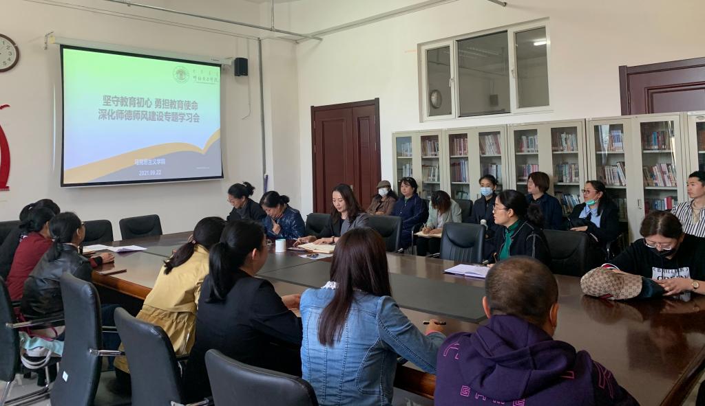 活动上,由教工党支部书记李琳颖领学了习近平总书记给全国高校黄大年教师团队代表的回信,学习内容涵盖和梳理了2013年以来总书记在教师节期间的重要讲话精神。全体教师观看了《教师:从知识的传授者到生命的点燃者》的网络视频,并学习了《新时代高校教师职业行为十项准则》、《内蒙古自治区高等学校教师师德失范行为负面清单》的相关文件精神。