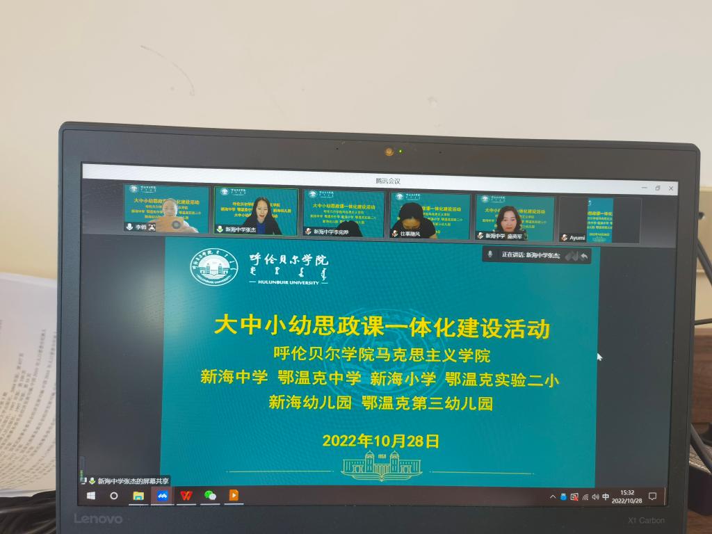 为推进大中小幼思政课一体化建设,强化思想政治教育人才培养的针对性、目标性和连续性,10月28日,十大买球外围买球的app十大平台、新海中学、鄂温克中学、新海小学、鄂温克实验二小、新海幼儿园和鄂温克第三幼儿园齐聚云端,共同举办大中小幼思政课一体化建设活动。