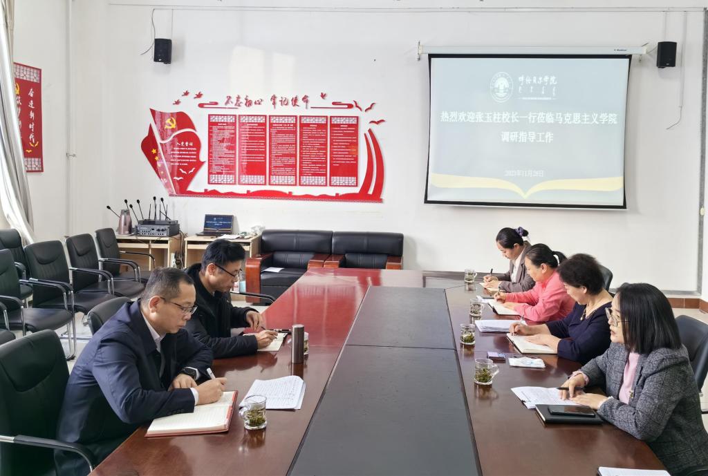 在听取汇报后张玉柱指出,马院教师要深化提升教师的理论研究能力,带着智慧走进课堂,切实提高思政课教师授课质量;要进一步加强师资队伍建设,为学院发展储备人才;要充分利用大中小学思政课一体化建设平台,主动发力,多措并举发挥育人合力。