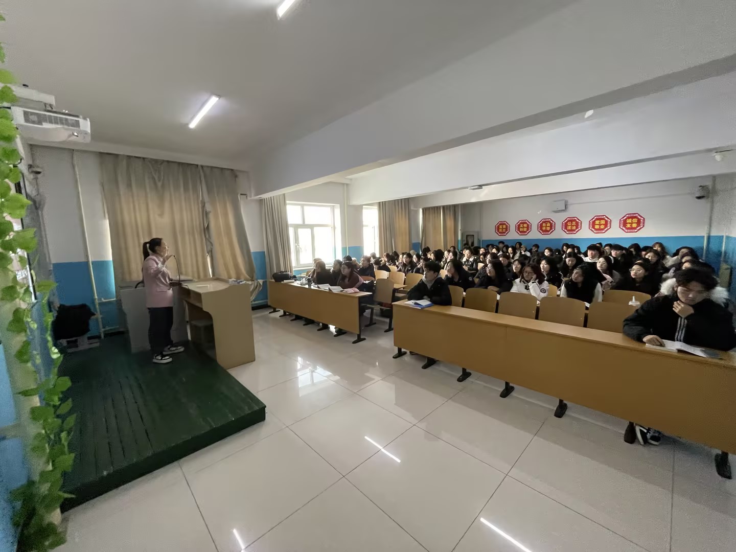 课上,学院教师李凌敏讲授了《习近平新时代中国特色社会主义思想概论》课程。课程围绕新时代是什么样的和进入新时代的依据是什么进行了深入浅出的讲解。在听课过程中,尹立军仔细观察学生们的学习状态,认真记录课堂授课情况。学生精神饱满,教师备课充分,教学秩序井然。