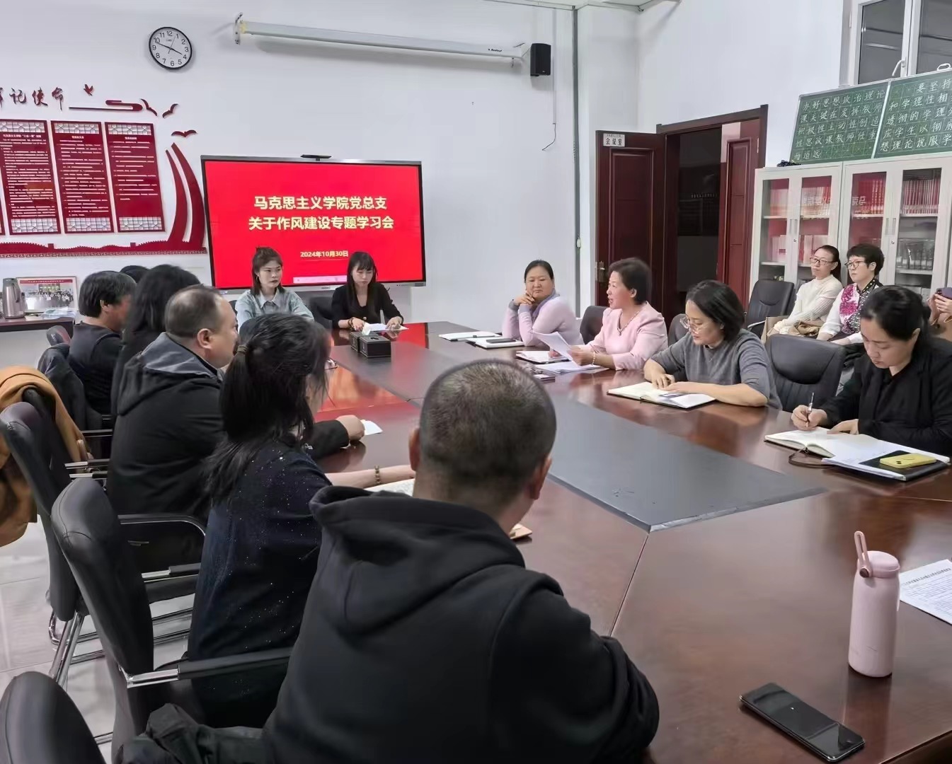 为深入学习贯彻党的二十届三中全会精神,进一步加强党风廉政建设,推进全面从严治党向纵深发展,10月30日下午,外围买球的app十大平台党总支在崇文楼B座123会议室召开学院党总支关于作风建设专题学习会。学院党总支书记刘凤琴主持会议,全体教师参加学习。
