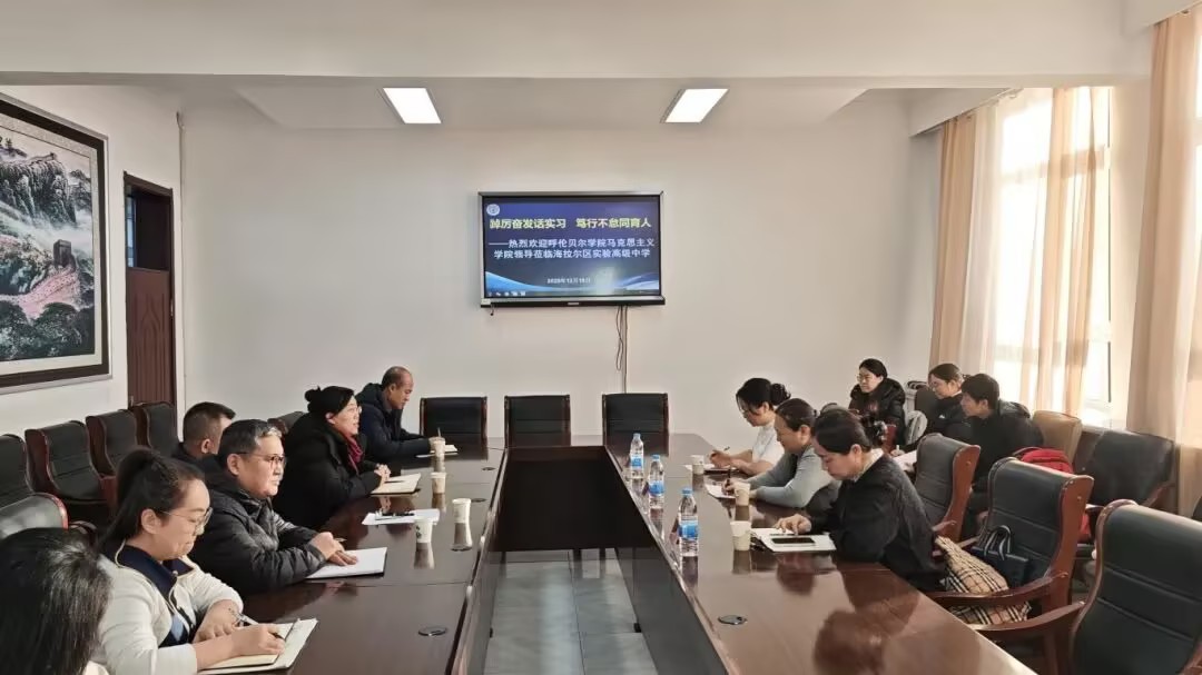 为强化实践教学基地共建,贯通大中小学思政教育协同育人链条,12月10日,外围买球的app十大平台党委副书记刘琳、副院长明兰、学生教育实践指导教师刘鹤深入海拉尔区实验高级中学开展教育实习交流暨实践教学基地深化合作活动,海拉尔区实验高级中学党总支书记白海波、校长胡洪涛、副校长张然和政治学科教师共同参加了此次活动。