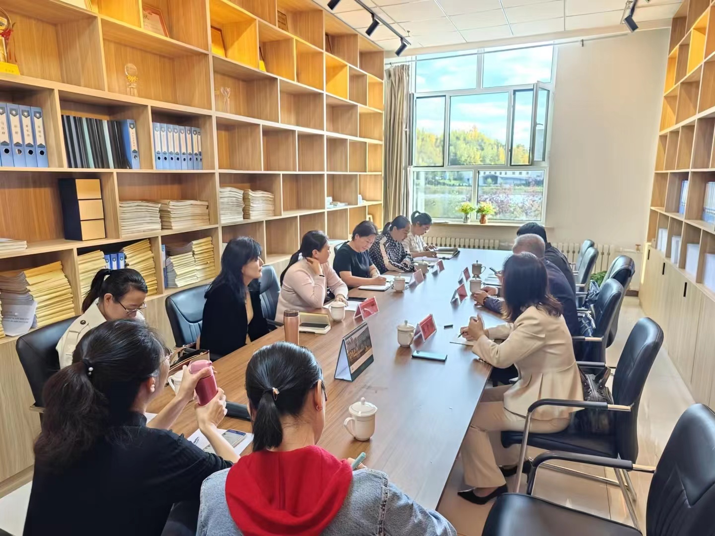 座谈会结束后,李化宇一行参观了学院教学资料室,翻阅了相关认证资料,就认证资料内容进行了深入交流。