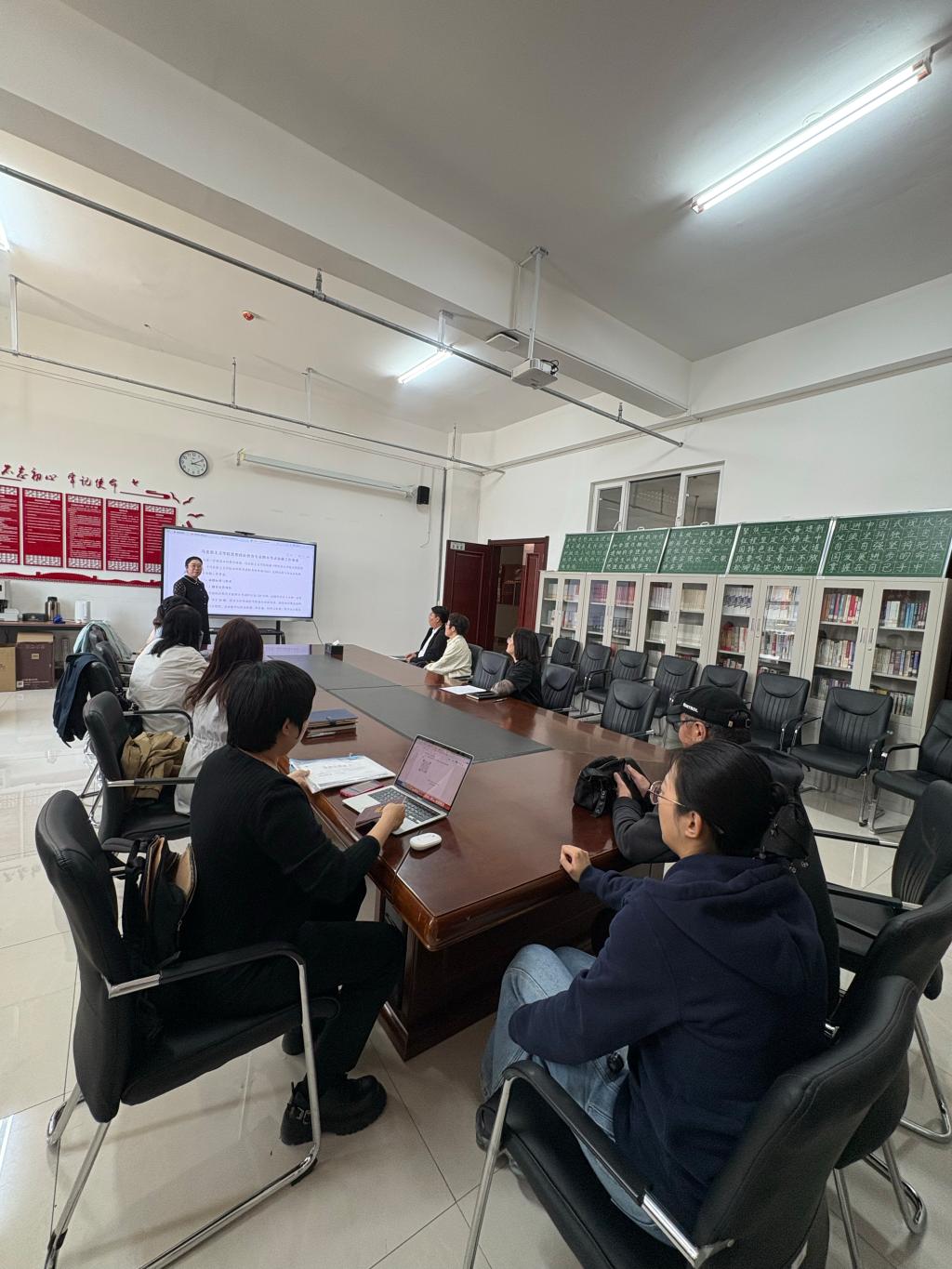 会议伊始,思想政治教育系主任魏婉莹围绕命题工作展开系统培训,从试卷标准化建设出发,详细解读了期末考试的格式规范、题型设置、题量分配等核心要素,着重强调命题难度梯度设计与知识覆盖的全面性。通过结合课程教学目标与人才培养方案,帮助教师明晰命题方向,确保考试内容既能科学检验学生知识掌握程度,又能有效考查实践应用能力。